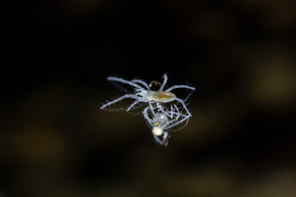 Another Central Oregon species found is the Campodean, sometimes referred as Diplura. It’s an arthopod, and the Central Oregon species have not been identified. William Shear of Hampton-Syndey College believes they are a new species. They have been observed living alongside cave-adapted millipedes as well as caves harboring ice. Campodeans can also be found in small cracks of surface rocks, also called microcaverns. This campodean was photographed in Alpine Ranch Cave.